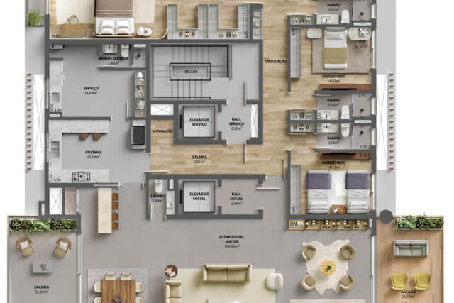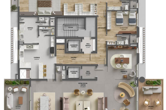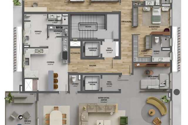 - Apartamentos de 356 e 382m² – 24 e 31mil/m² (4 suítes, 3 ou 4 vagas)