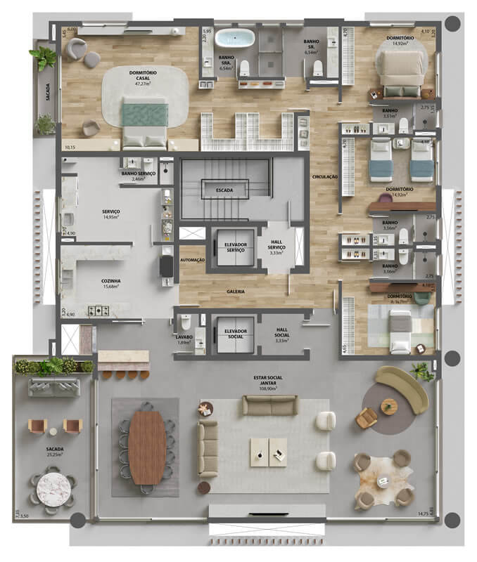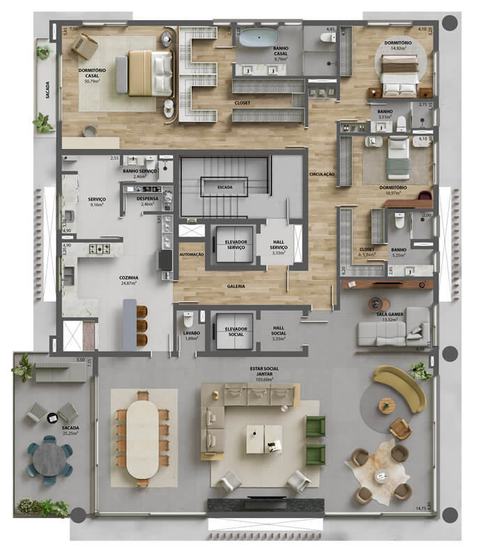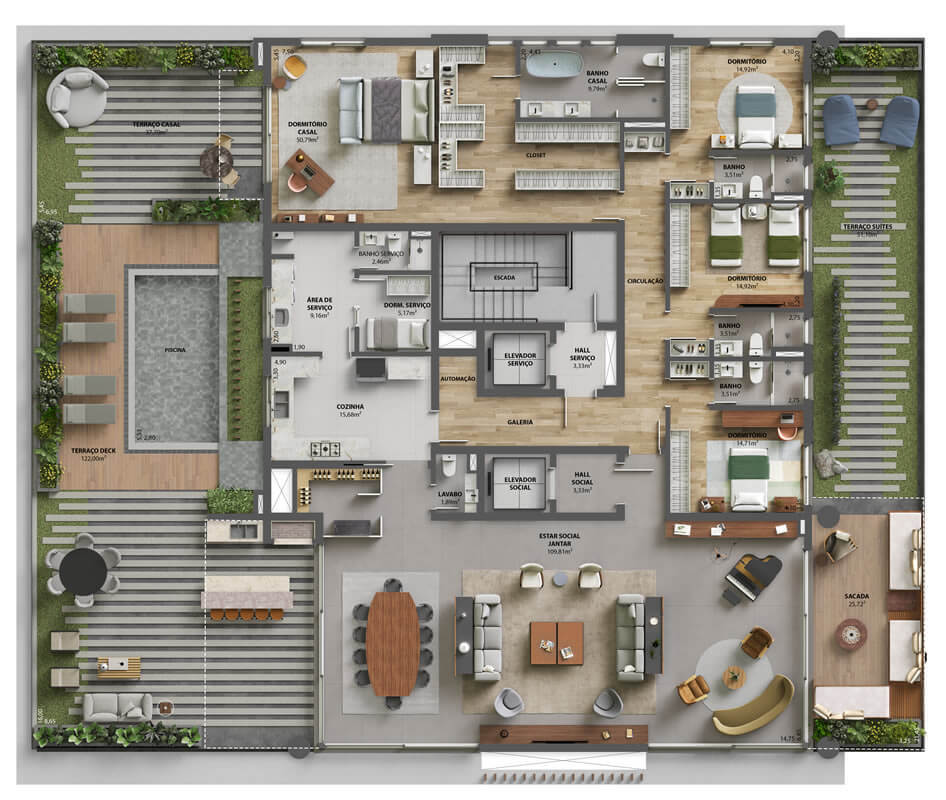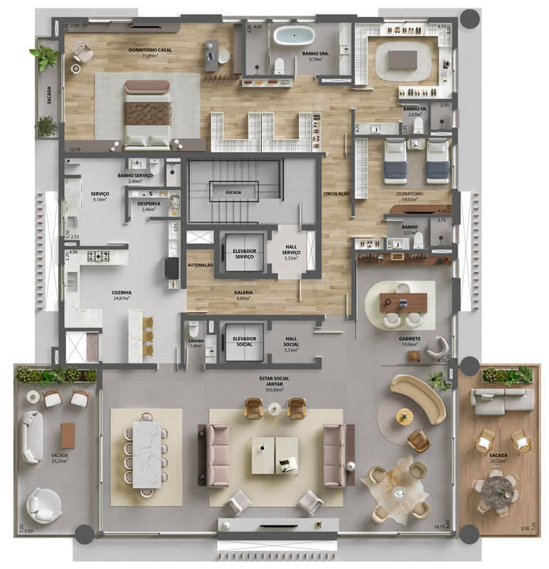 - Apartamentos de 356 e 382m² – 24 e 31mil/m² (4 suítes, 3 ou 4 vagas)